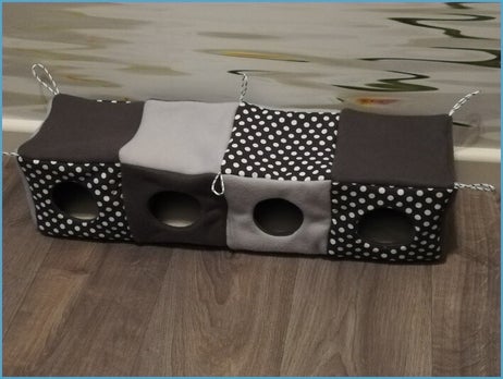 De 2 onder 1 kap Ophang Kubussen zijn ook favoriet bij ons eigen fretje.